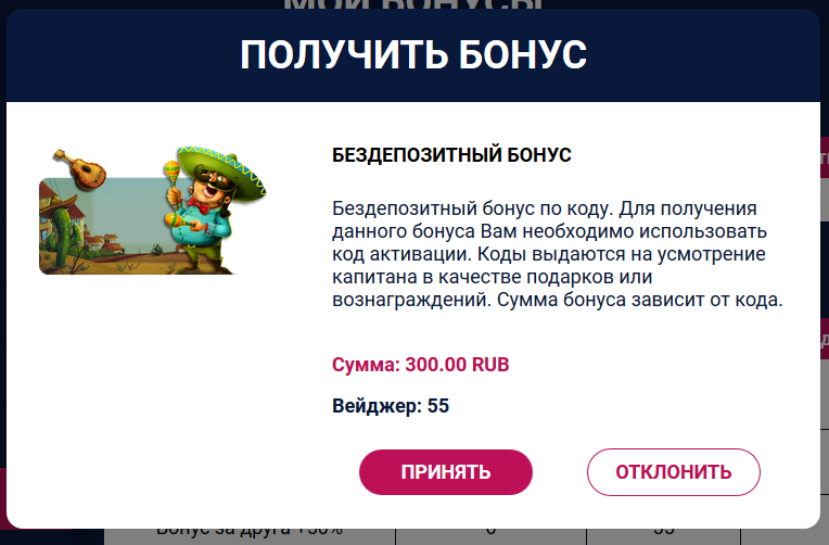Я не спрашивал за вейджер, я взял чисто поиграть, если бы поднял до сотыги, узнавал бы что и как) Можешь сам в чате узнать)А где вейджер смотреть? Почему показывает с самого начала что бонус отыгран?