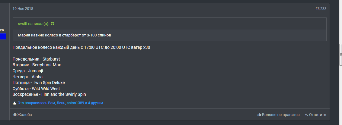 Горячая тема Обсуждение бонус кодов и фриспинов