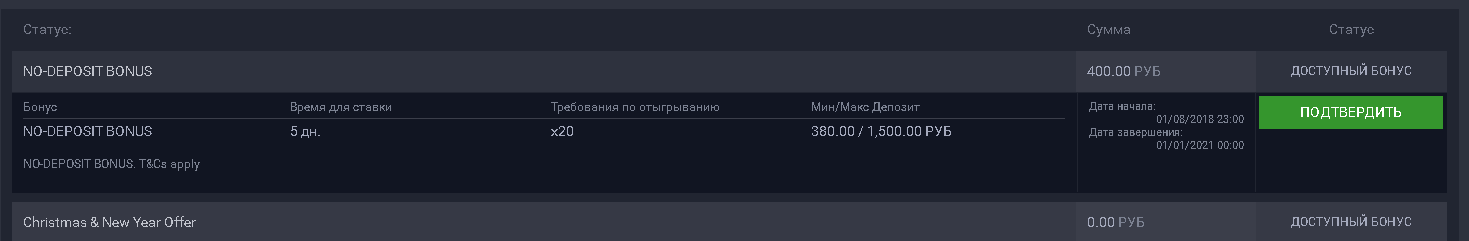 Бездепозитный бонус в казино 400РУБ