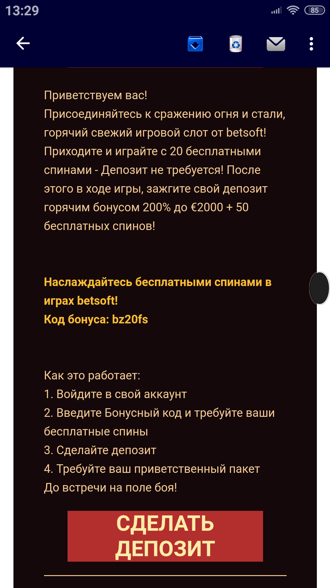 Уважаемые форумчане! Кто подскажет, как в Bronze Casino, в мобильной версии, можно ввести бонус код не совершая депозит? Может есть другая форма для ввода?