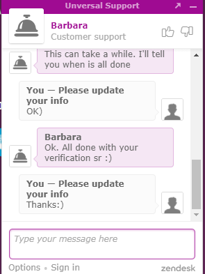 Верифицировали через чат без проблем.. Загрузил доки в профиль и им в чат.. Сразу письмо пришло..