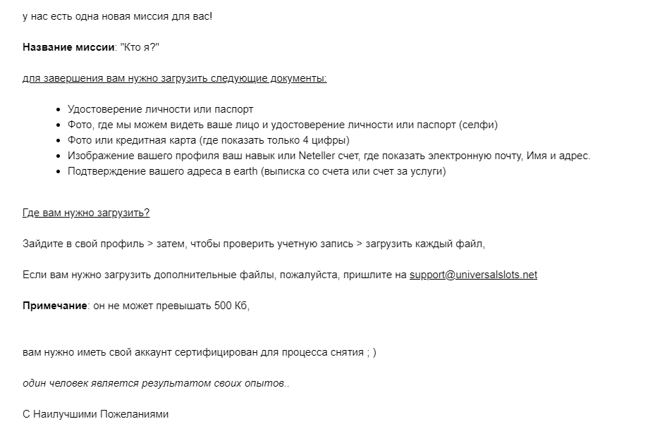 А кто может объяснить, в этом universalslots где бабки раздают с промокодами без вейджера, там кроме паспорта надо залить документ PROOF_OF_ADDRESS (подтверждение места жительства), туда что именно нужно заливать, какую-то квитанцию об оплате жилья или страницу паспорта с местом жительством?