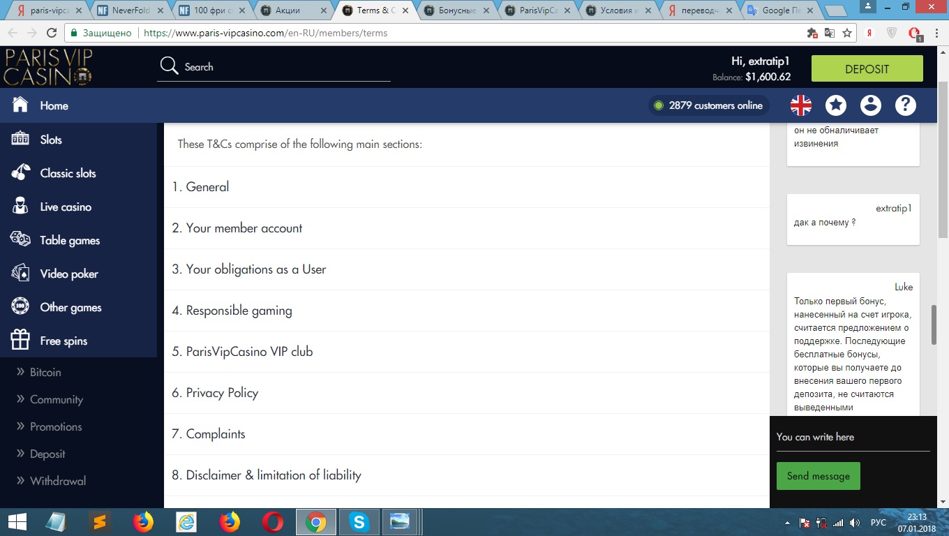 Если бы даже один взял,при выводе скажут что это фантики для ознакомления.Это казино из бывшей сети Top Game.А этих засранцев я думаю ты знаешь.по поводу последнего казино https://www.paris-vipcasino.com/en-RU/registration там где дают 100 спинов за подтверждения телефона . при открытии слота я сразу открутил 25+100 спинов с них дало 50 удалось расскрутить счёт до 1600 долларов ну и после как обратился в чат меня сразу побрили . скрин прикрепил .
