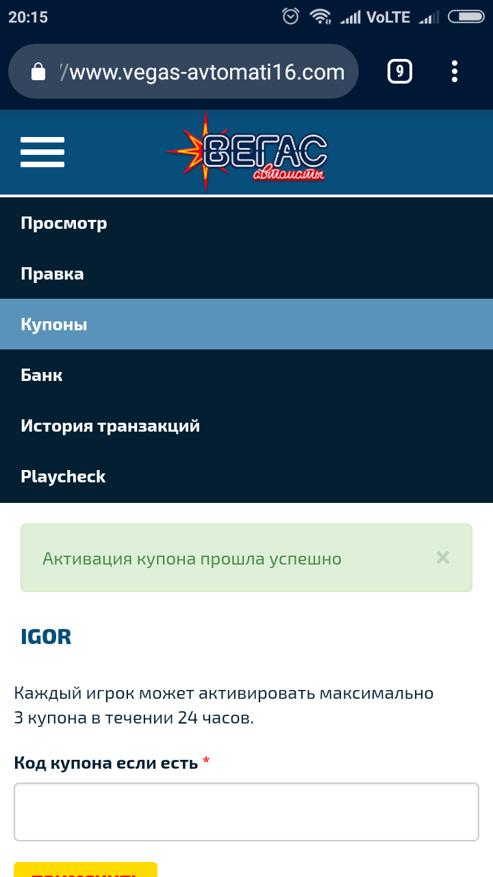 кое как сейчас купон активировал, начал слот в поиске искать и опять все упало))