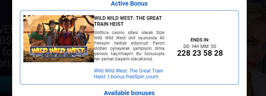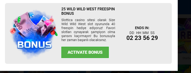 Slottica - 40 Free Spins no deposit bonus: wild wild west