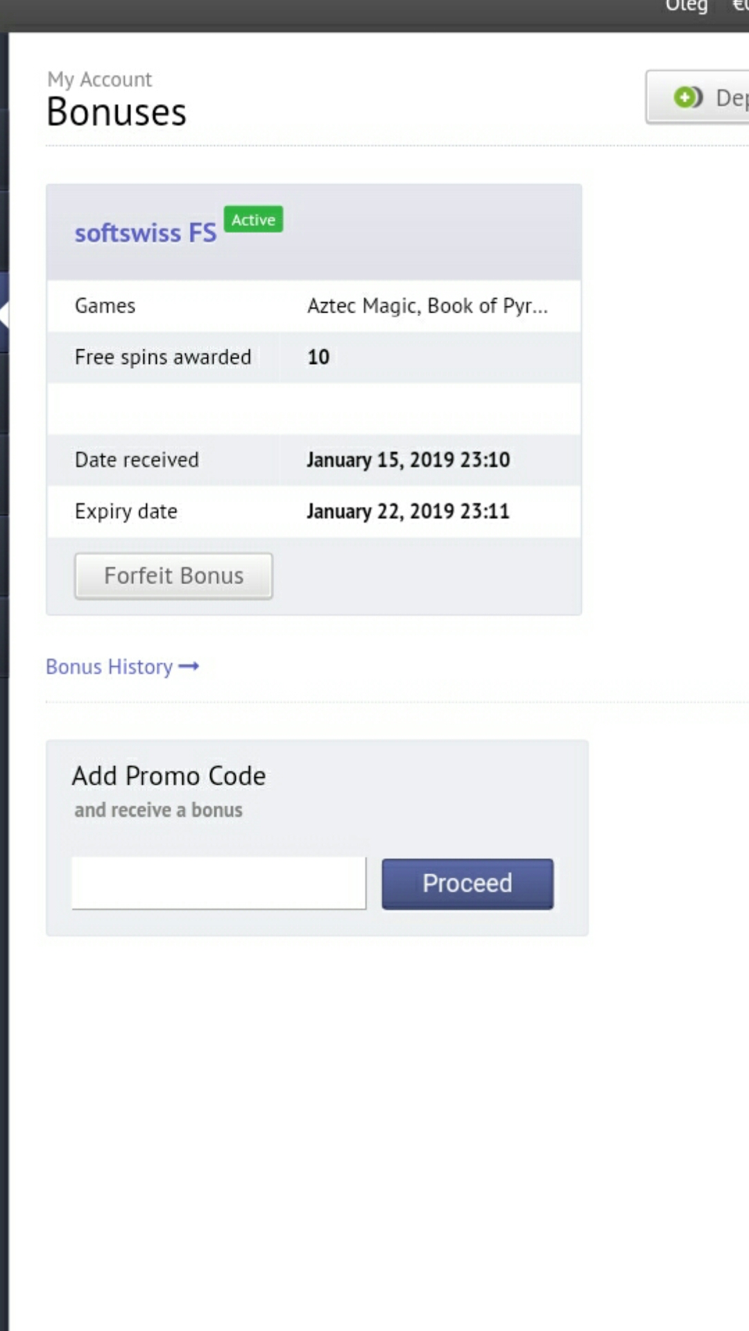 или делавшим ранее депозит,я депер получил