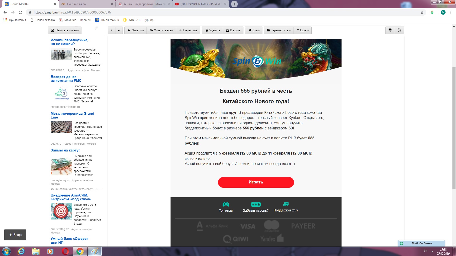 Что более странно-это то что эту рассылку прислало Бонанза казино)