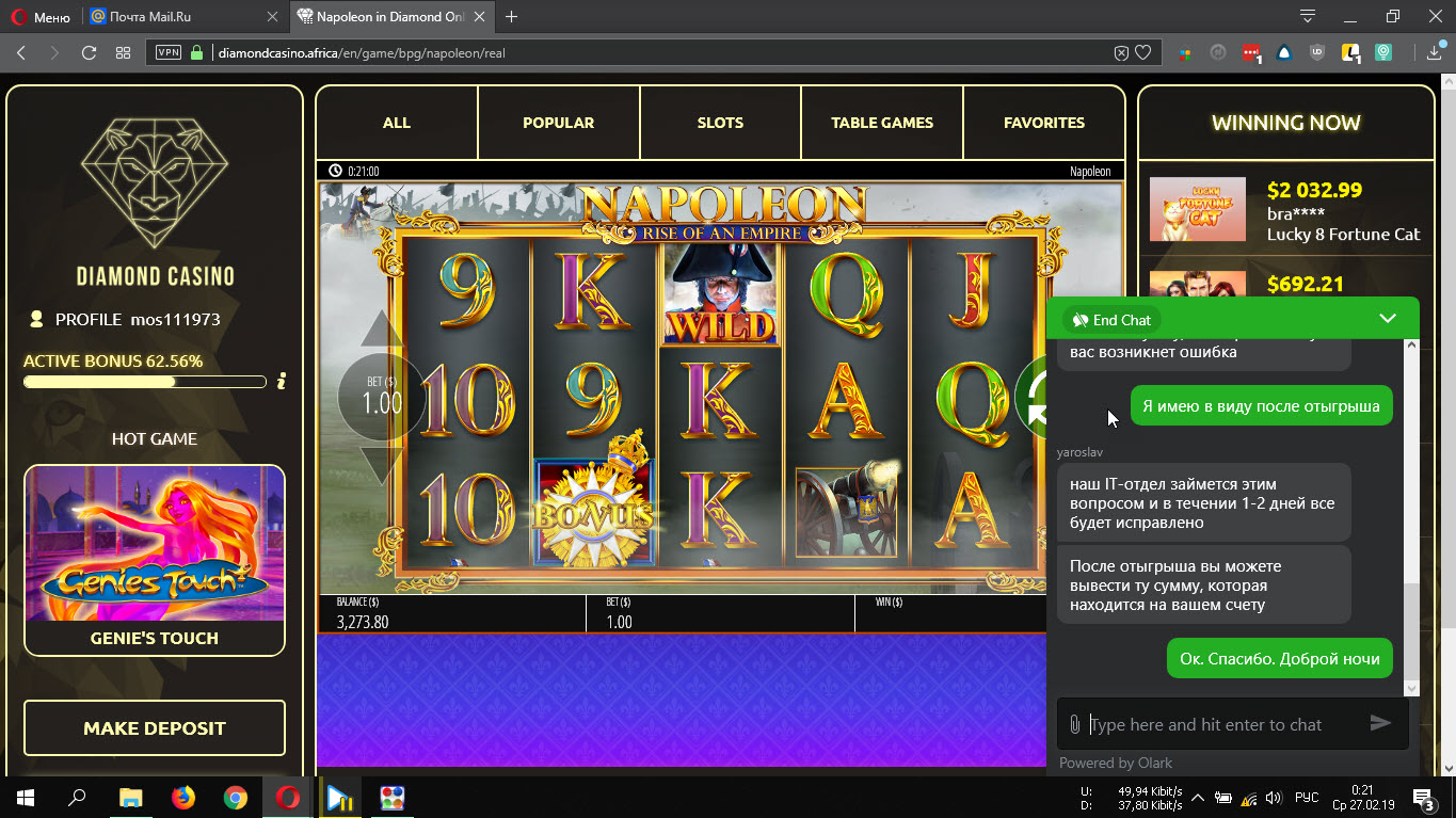 блин пишет у вас неотыгранный бонус