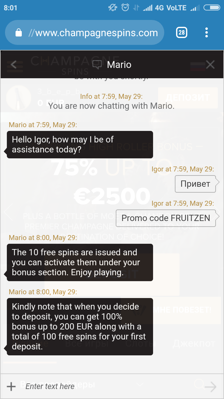 https://www.champagnespins.com по обращению в чат с промокодом FRUITZEN