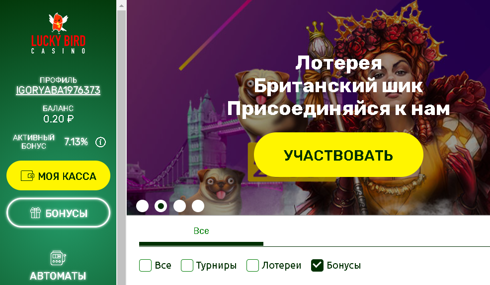 А мне почему-то не начислился бонус в Luckydino((((