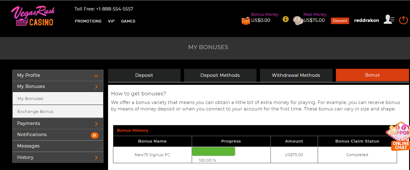 https://www.vegasrushcasino.com/ мне сразу также упало на реал счет,подбил до соточки, хз,чата нет,отписал им на электронку,в аккуанте написано что вагер отмыт на 100процентов.