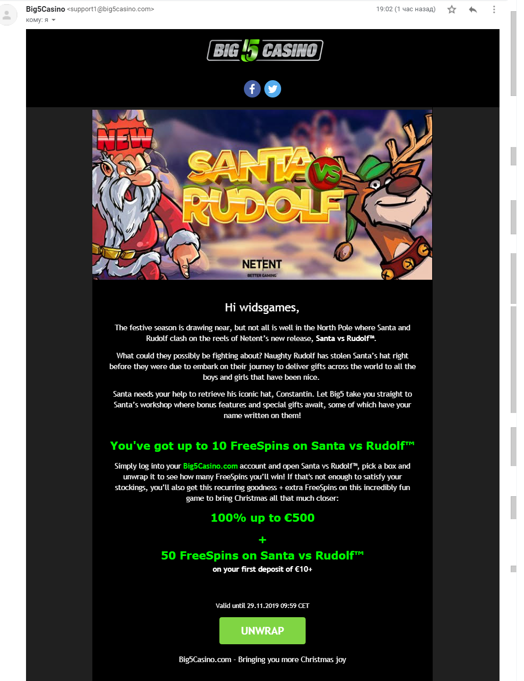 Просто войдите в свою учетную запись Big5Casino.com и откройте Ѕanta vs Rudolf ™, установите флажок и разверните его, чтобы увидеть, сколько FreeSpins вам понадобится! Если этого недостаточно для удовлетворения ваших чулок
