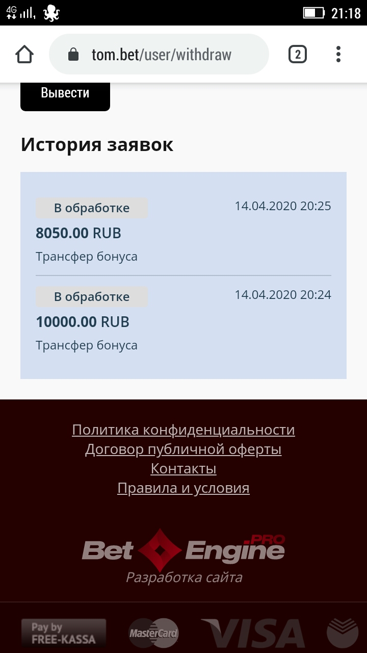 Тоже 4000 висит. Но я не буду депать, здесь на 99.99% скам, чс лохотрон. Понаблюдаю, может кто на свой страх и риск решиться. Да и в сети пока не нашёл отзывов, чтобы кому-то вывели 🤷‍♂️