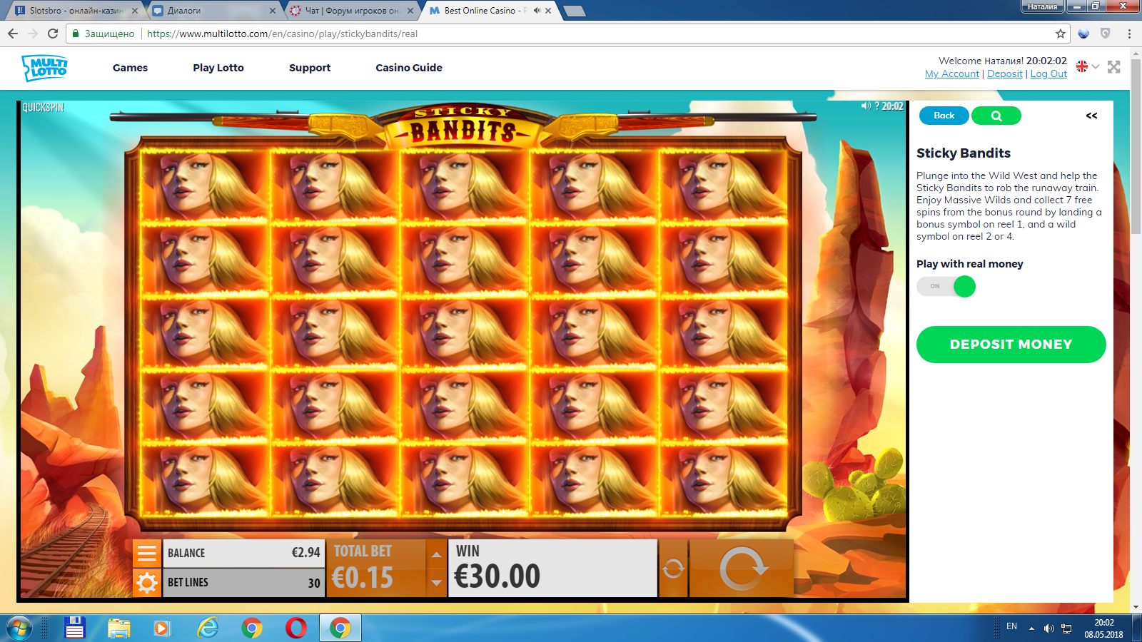 Так а на каком слоте?мультилотто 9 евро с копейками, не отбил(((((((((