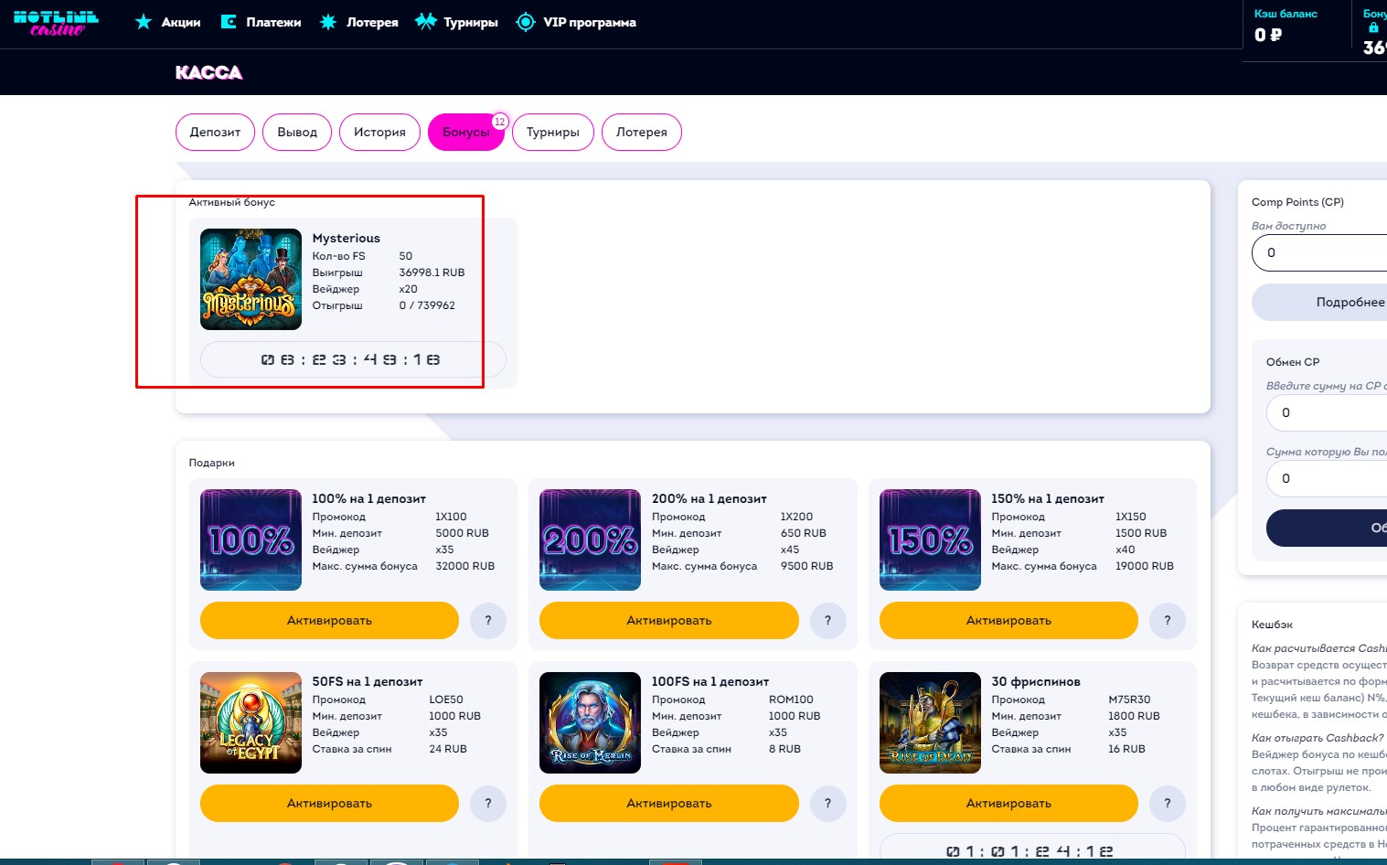 Горячая тема Обсуждение бонус кодов и фриспинов