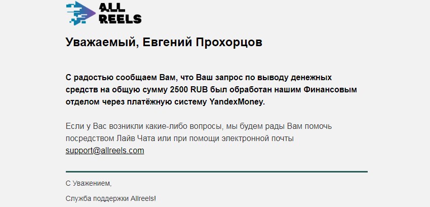 Боту отправил Емайл. Тот съел, но в аккаунт ещё не заходил. Ответ от него был что начислят с понедельника по пятницу, типа чекай аккаунт. Ну там не было глюков в слотуме, начислят полюбому, кого принял.