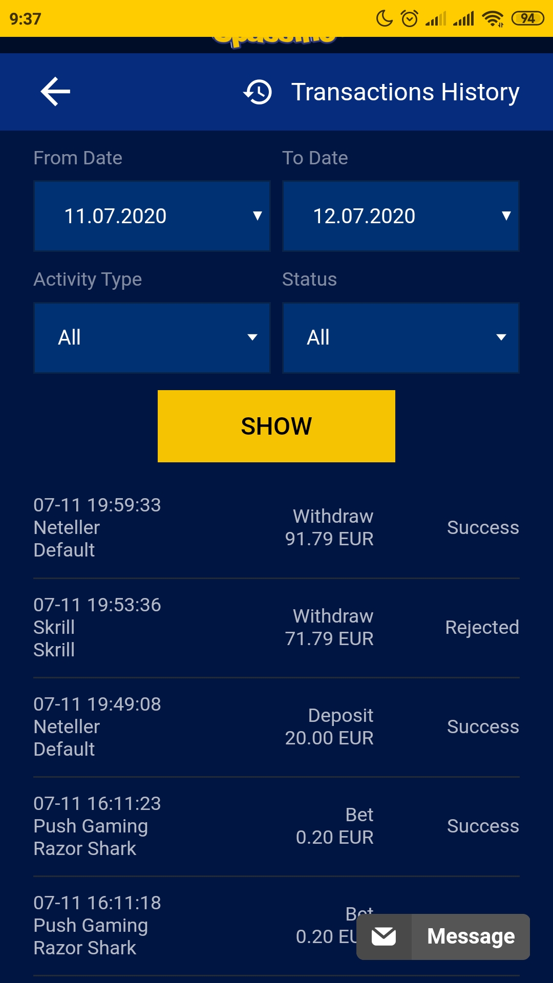 Я тоже отбил и вывел на нетелер, правда 70 евро плюс деп 20, вывод 5 минут через чат