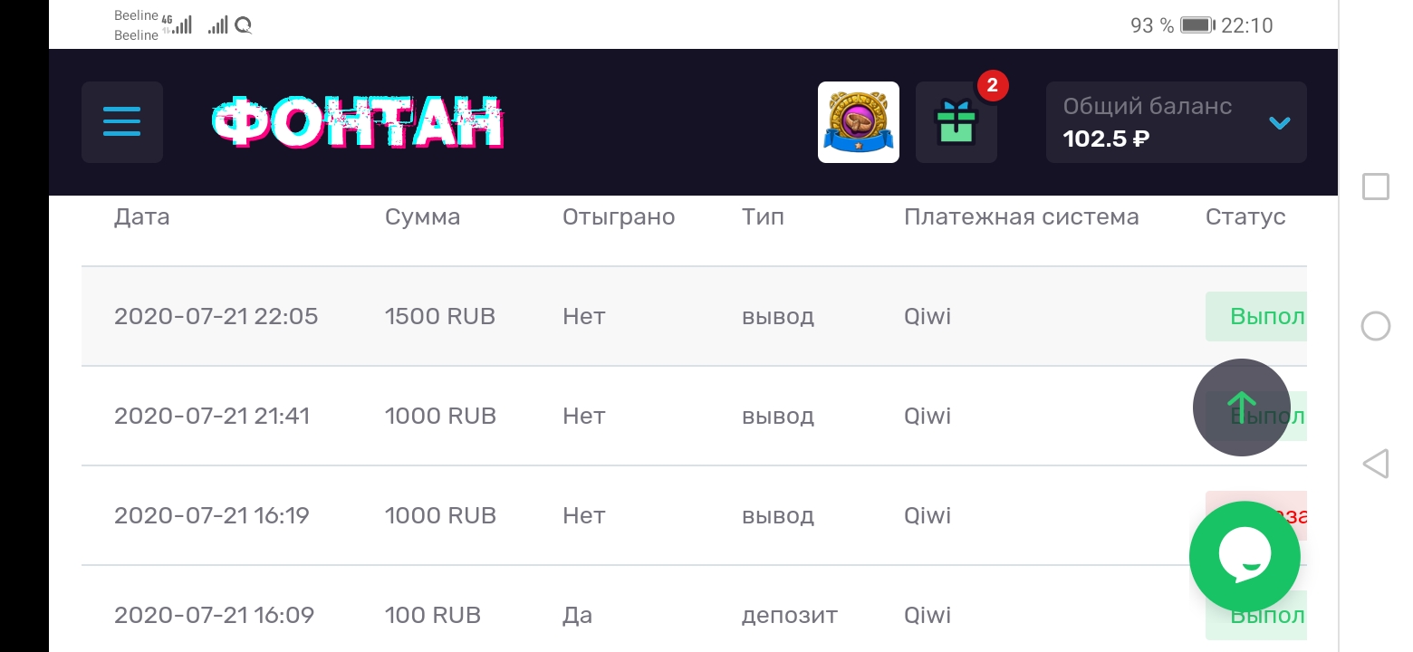 В казино фантан, отыграл 1000руб только со второго аккаунта, сделал депозит 100руб и они спалили, но разрешили дальше играть. Итого +2 500руб :cool: