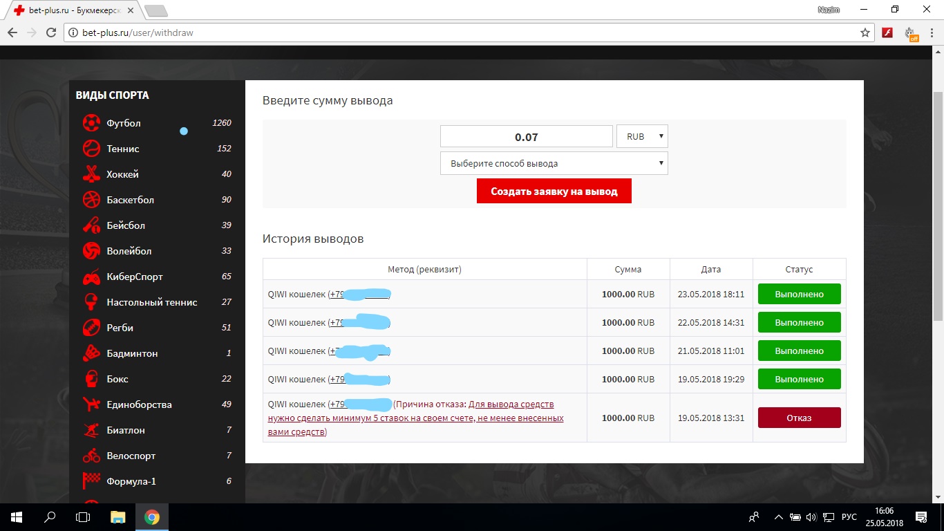 https://casino.my/threads/fribet-100-rublej.7652/Подтверждаю так же вывели четыре раз по рублю, без проблем в срок и без доков и без депа, просто сумму фрибета нужно открутить, поставить пять ставок в общей сложности на ту же сумму то есть на сто рублей. Вывод от 1000р минималка ставка от 100р ну мне не плохо заехали пару ставок, после скину пруфы .