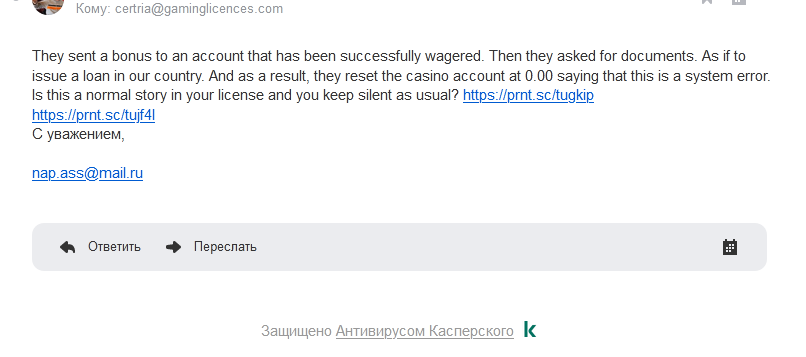 Имейте в виду, что в случае нарушения условий казино и / или бонусов, команда по рассмотрению жалоб AskGamblers, к сожалению, не сможет вам помочь. Независимо от того, считаете ли вы эти условия казино справедливыми или нет, AskGamblers твердо придерживается нашей позиции, что после того, как они были приняты игроком, они должны должным образом соблюдаться и соблюдаться. Все вопросы, касающиеся справедливости условий конкретного казино и / или бонусов, вы можете адресовать напрямую соответствующему регулирующему органу, который является единственным органом, имеющим законные полномочия рассматривать такие вопросы, проводить соответствующее расследование и принуждать к последующим изменениям, если будут обнаружены какие-либо нарушения.