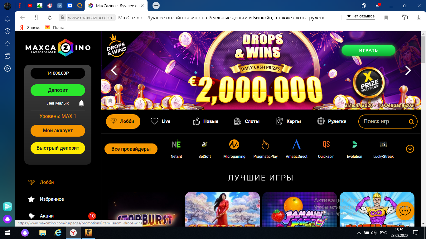 Зачем тогда накалачивал 150 евро и бонус отыгрывал, если не заморачиваешься по выводу?) ещё скажи что ради интереса) а все таки кто нибудь депал в maxcasino? Странное Казино, со второго спина плюс 8к, потом в какой Слот не заходила наваливало так же))) думаю больше на кидалово похоже, иначе бы мин. деп хотя бы поменьше сделали... кто что думает???