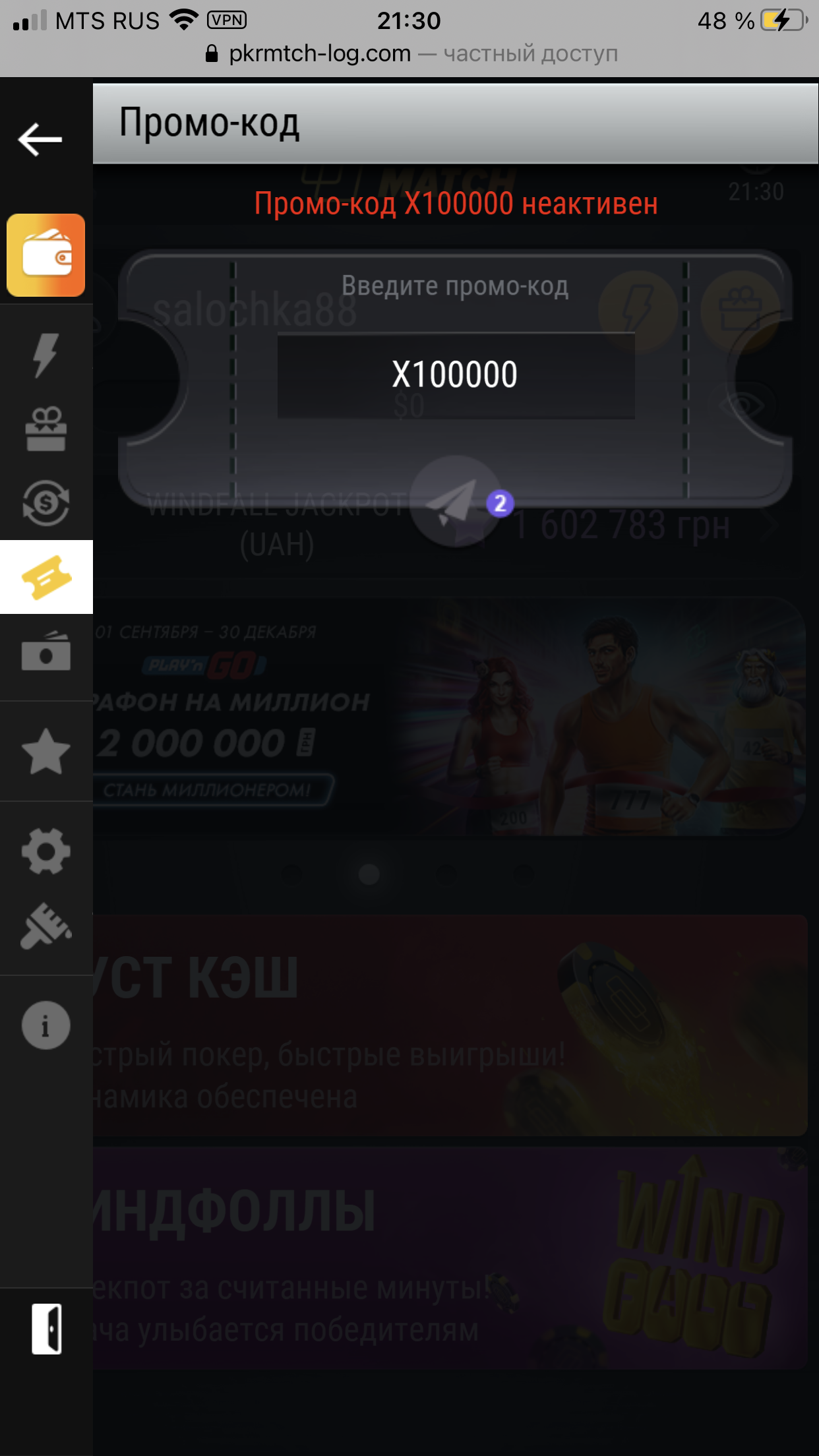 Часа два мы будем собирать желающих. Потом возьмём список и отправим всем фриспины. Я отпишусь тут, когда мы это сделаем. Если вы блокировали себе слоты, то вы не получите фриспины, даже если введете код.