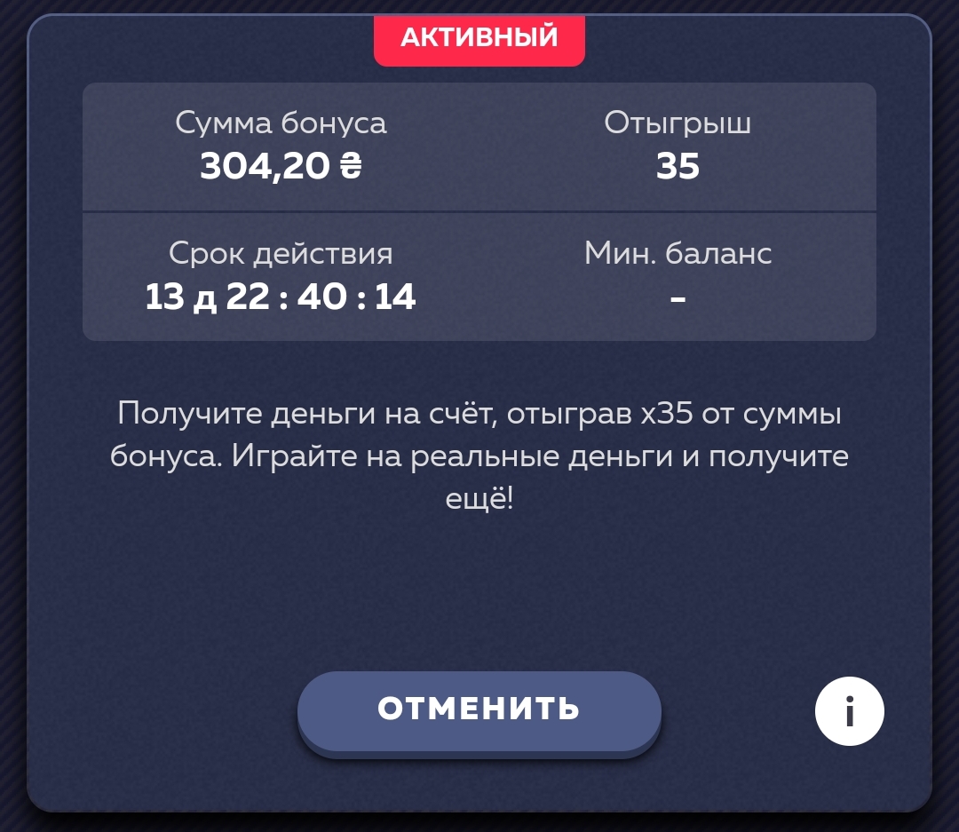 И у меня тоже х35.. 167руб с 50спинов.. да нафига мне такие подарки.. :(дерьмо блин:(