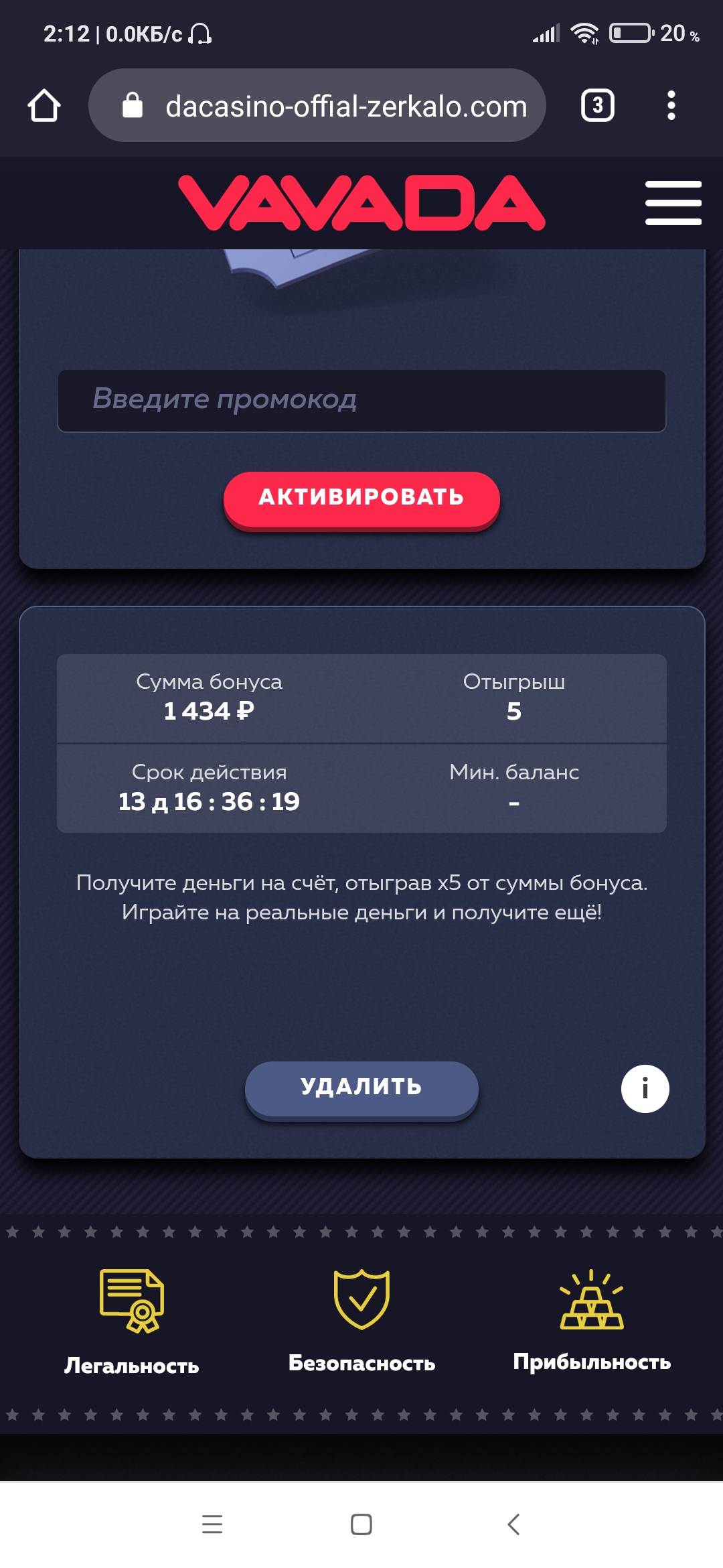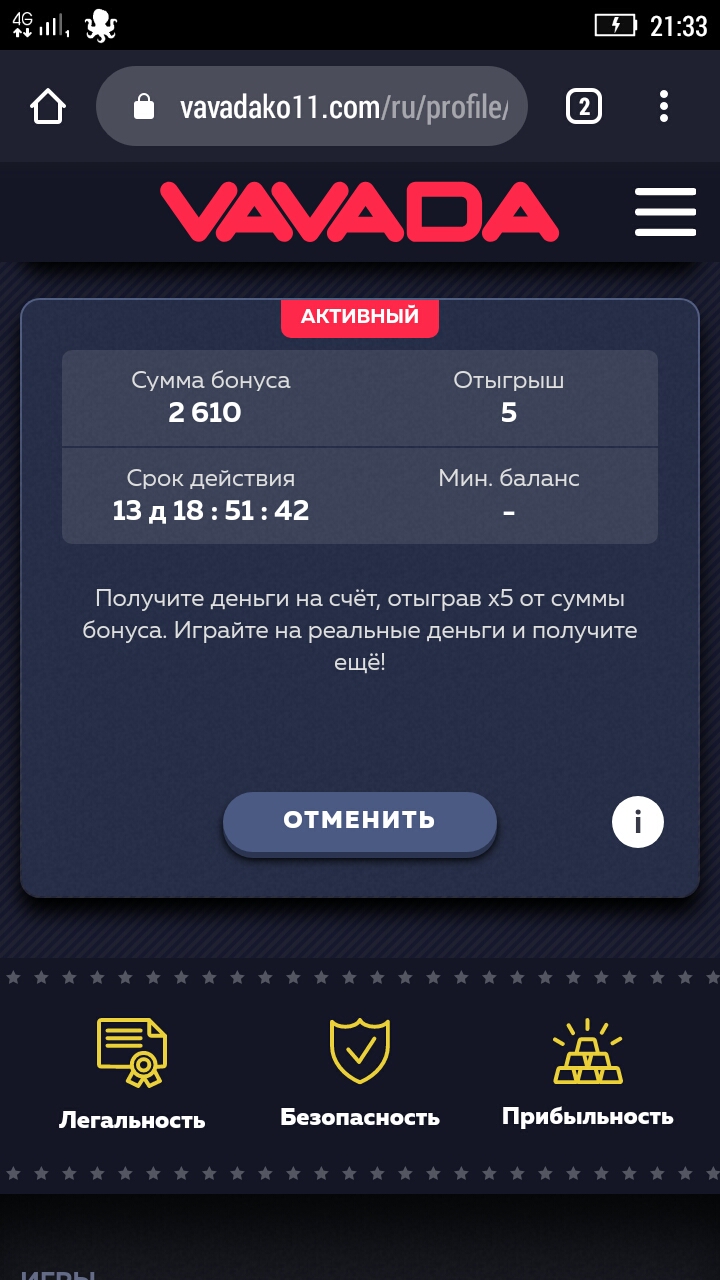 Вавада прилетело на почту
