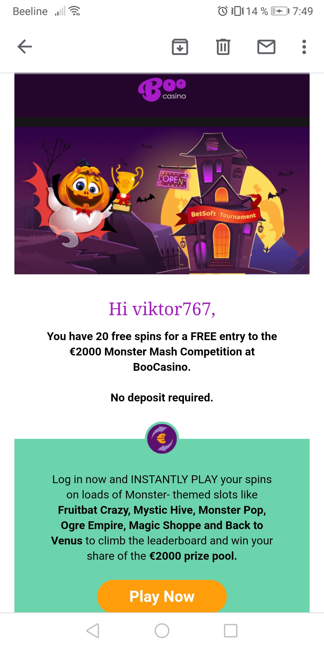50 спинов по 20 рублей (мне дало 52 рубля)) ) отыгрыш 5х со своих