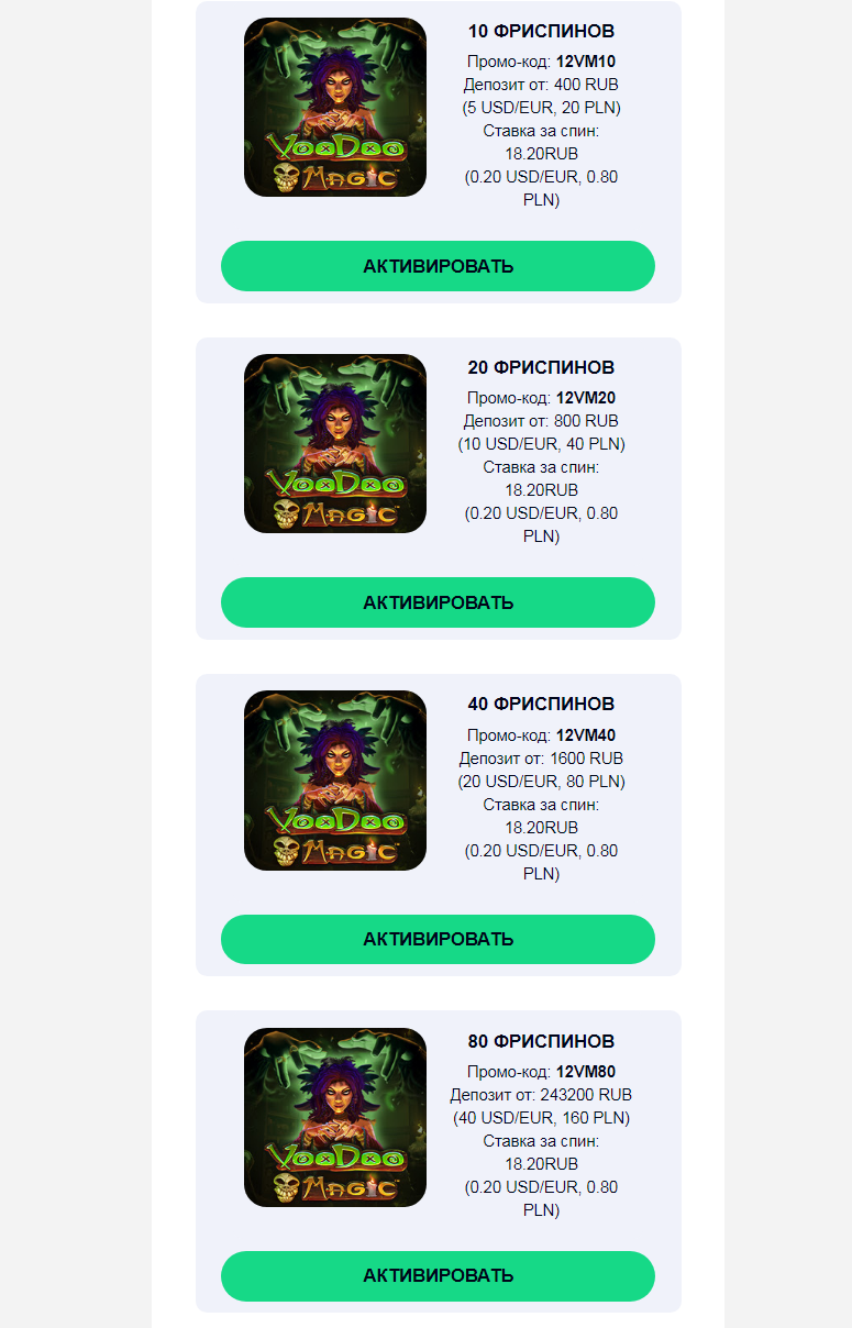 Депы и количество фриспинов разное но старка одна и та же.