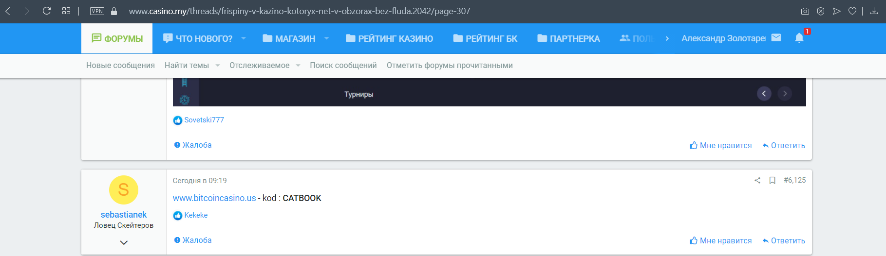 Горячая тема Обсуждение бонус кодов и фриспинов