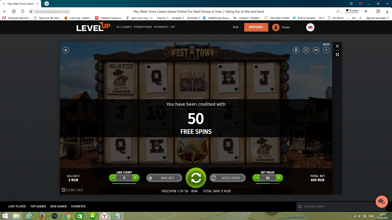 ребята у всех спины по 450р77 поддержка сказала что нет такой акции что по данному промо спины 0,18 евроВ LevelUp casino за деп 1500р с кодом DERRINGER дают 50 ФС в WestTown по ставке 450р
