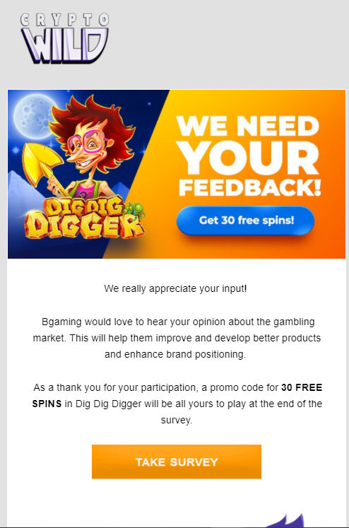 борода из ваты, не активируется купон. для депозитчиков походу или кому письмо пришло.Crypto WILD дают 30 фриспинов за опрос