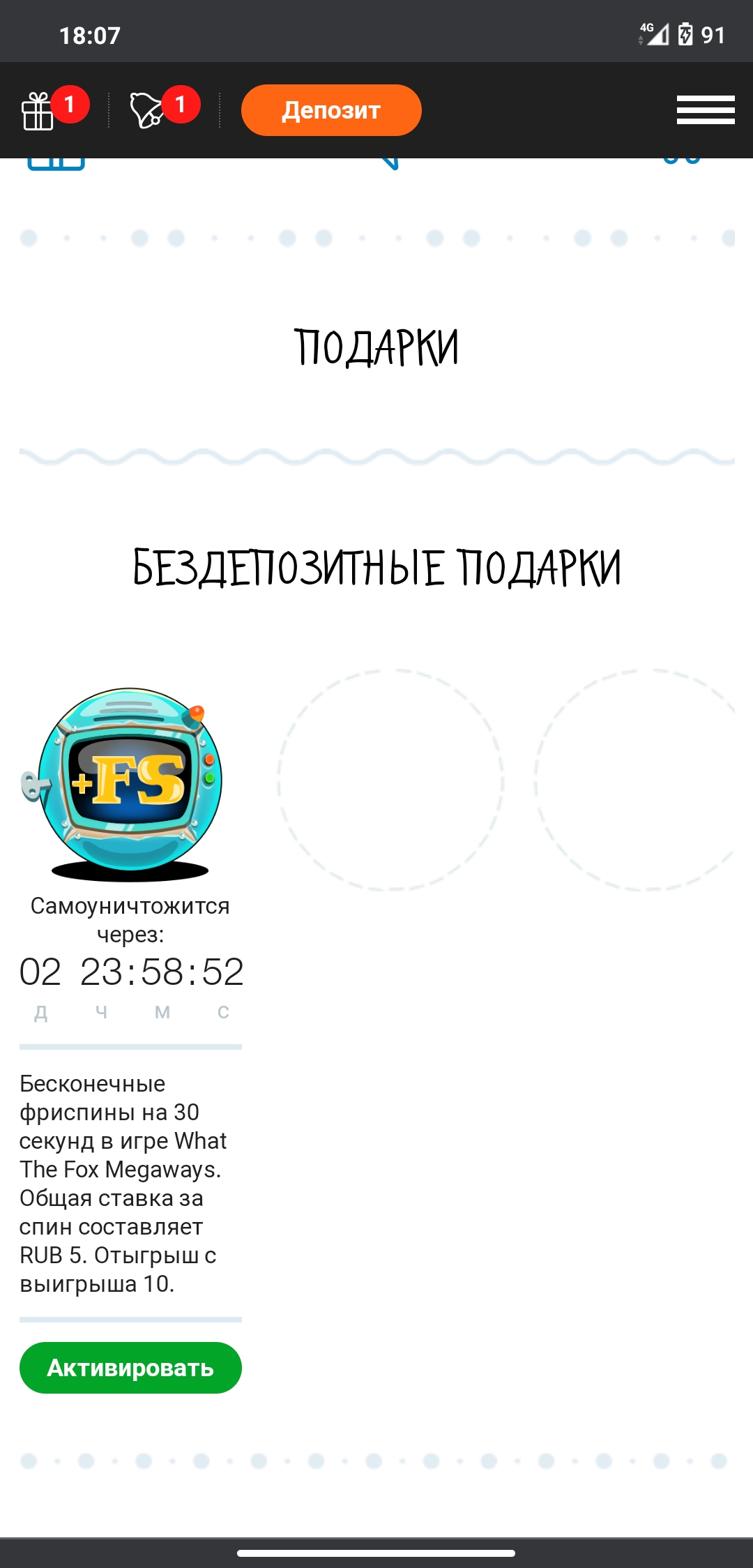 Этот бонус доступен для игроков, сделавших минимум один депозит.