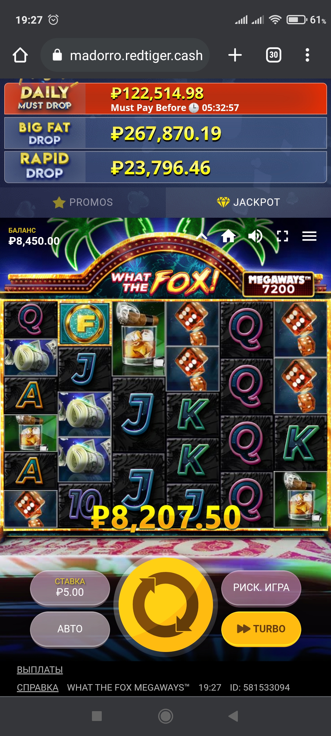 А мне фартануло... С 30 секунд фриспинов дало 130 рублей, при их отыгрывании сыпануло в бонуске...Х1640...