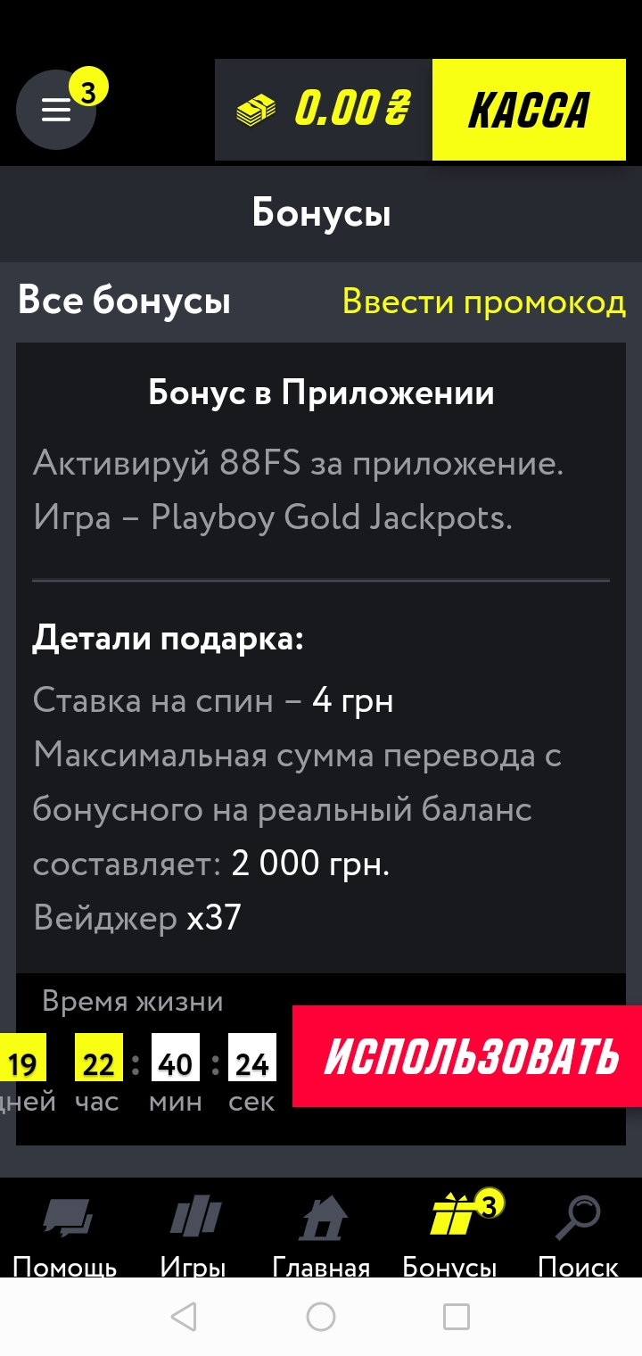 Выигрыш, полученный с бесплатных спинов, необходимо отыграть 30 раз, в течение 3 дней с момента получения.