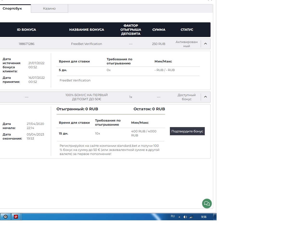 Хорошо что напомнил -) Мне дали. Вот только что-то у меня сайт лагает жесть...standart bet,видел тут акцию,за регу и подтверждение почты,доков,дают (?) Фрибет и фриспины.зарегил,загрузил доки ещё в воскресенье,уже среда,нет ничего.Кто знает,стоит ли заморачиваться с этим ,или это шарага?