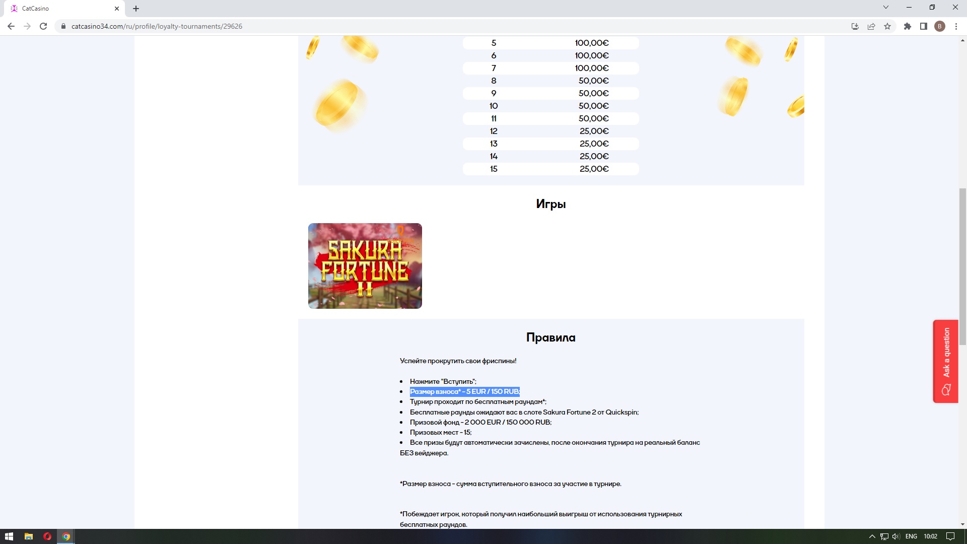 • Призовой фонд - 1 000 EUR / 75 000 RUB;