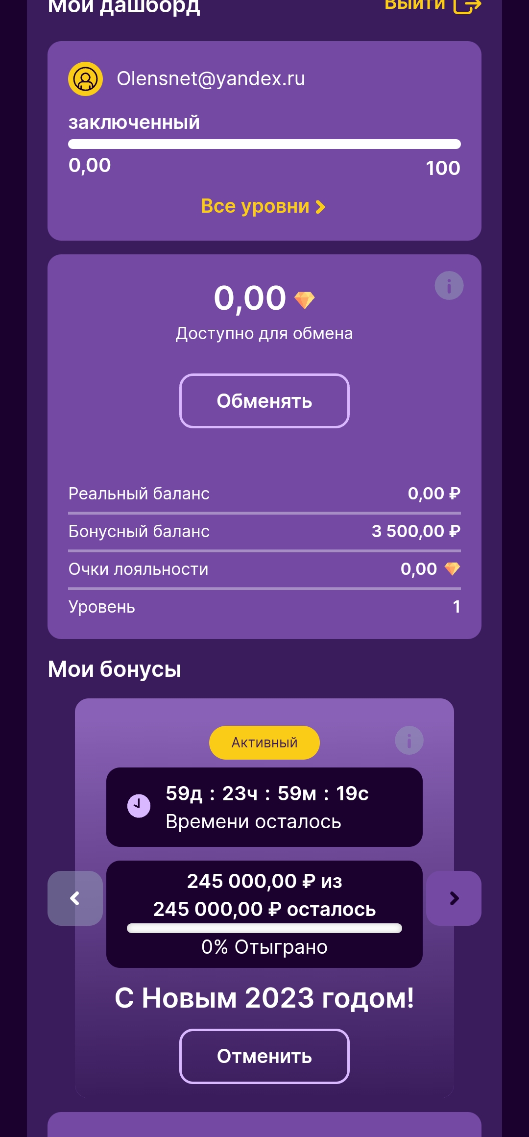 А у меня другой турик,нада взнос делатьCat Casino