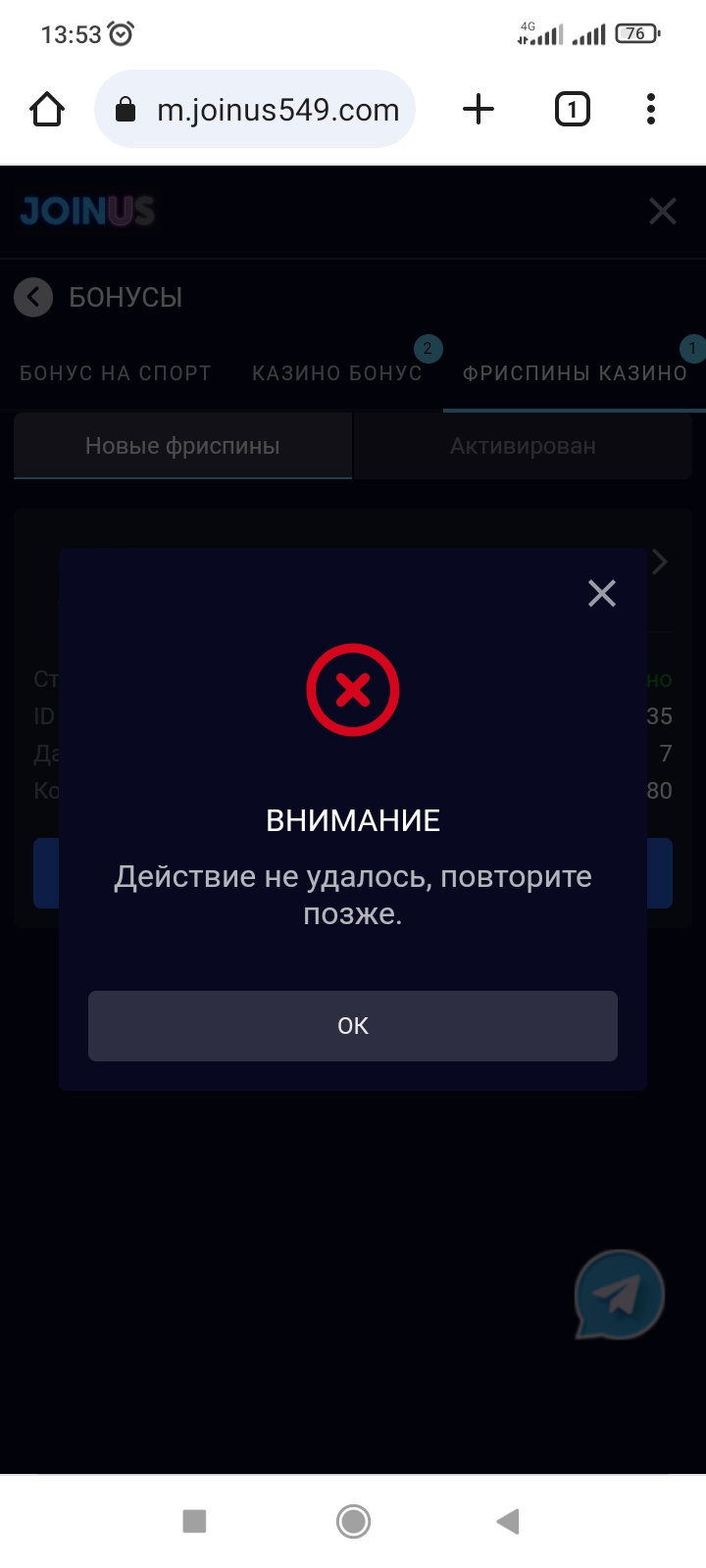 Такая же шляпа...Посмотреть вложение 143665. Промо сработал, но спинов куй