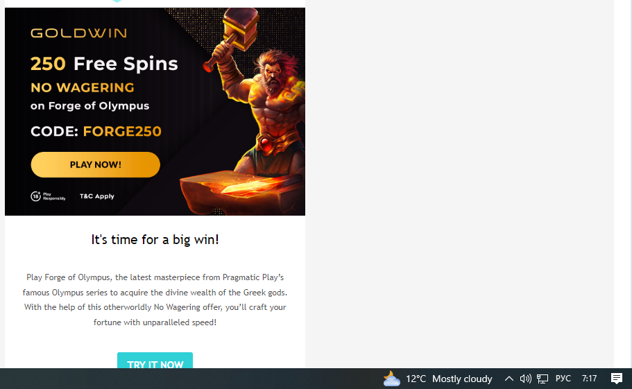 хз, может индивидуально, но дали 250 спинов - да еще и без вагера