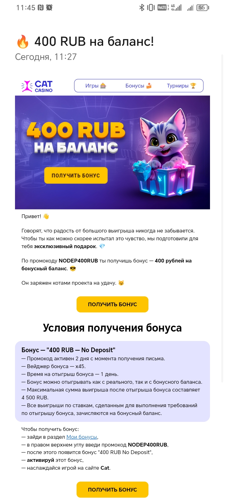 Регистрируемся, на следующий день или через день (точно не помню когда начисляли), получаем 50 фриспинов без депозита. Я уже два раза по 50 фриспинов получил, а сегодня начисли 5$.Посмотреть вложение 149477