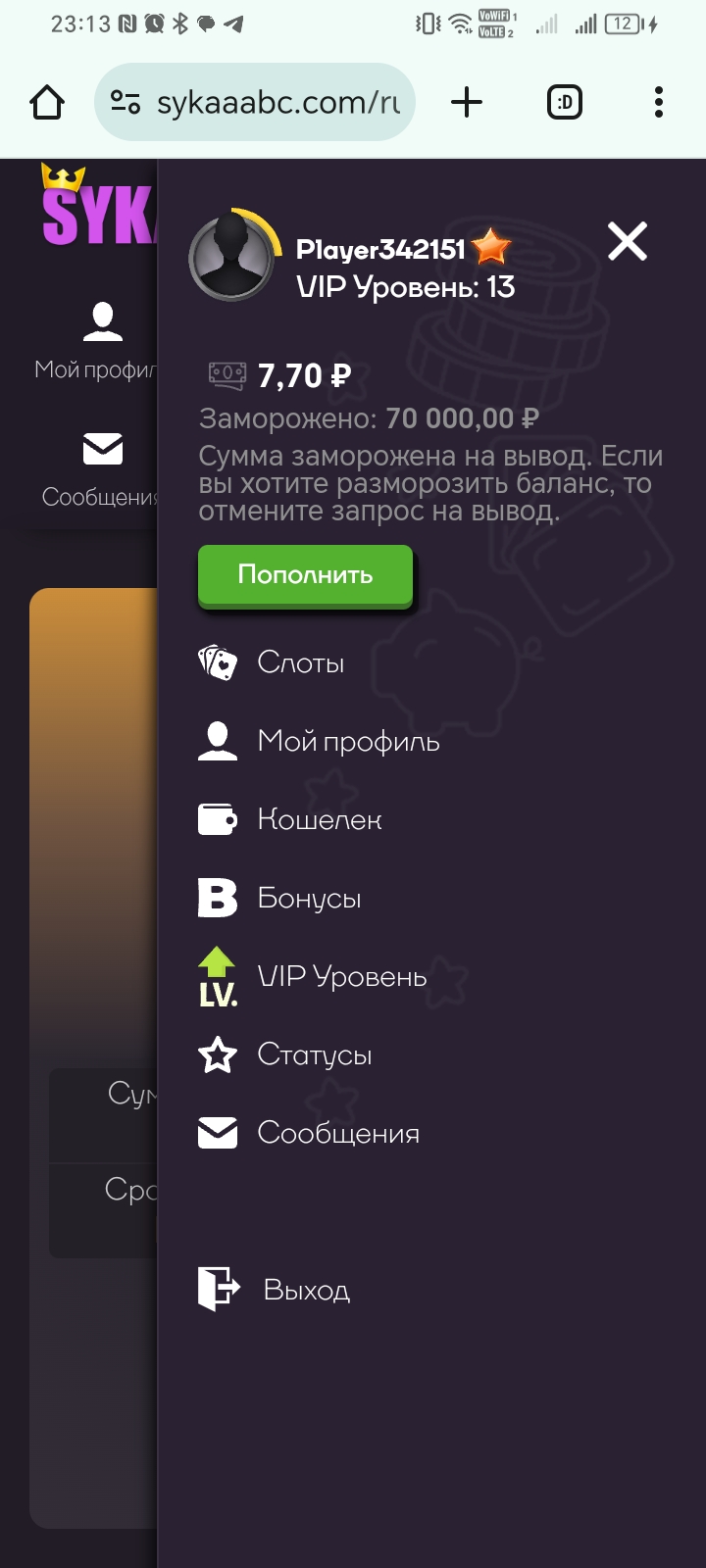 После открутки фриспинов просит депозит от 1000р.Syka VALENTIN50