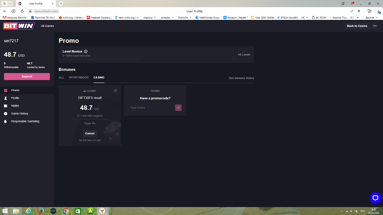 Извените что не в той теме, вчера этот бонус выкладывали в этой теме и отыгрыш х40 за свои кровные.Garilla Casino