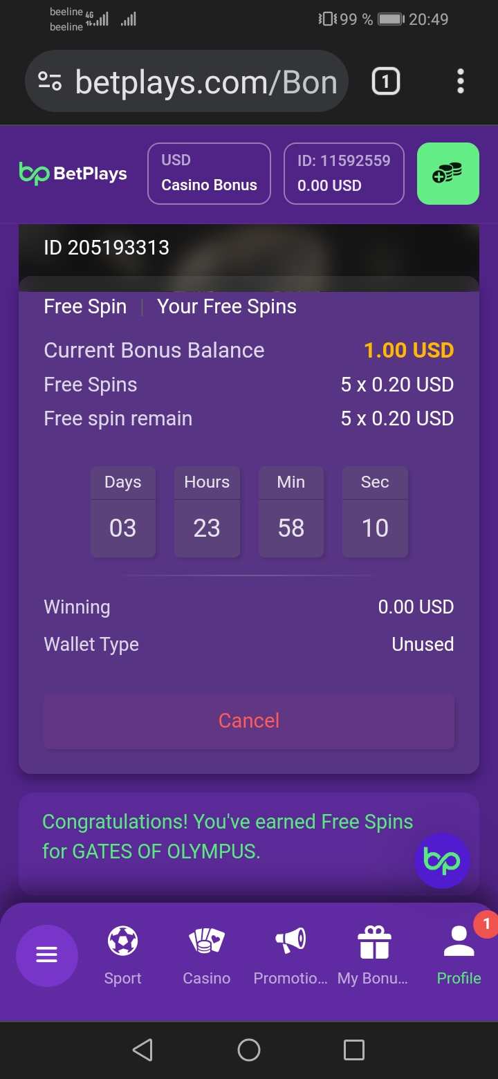 самое смешное что эти 5фс они заявляли что дадут после верификации почты и телефона. я не верифицировал ни то ни другое и открылся банер с этим бонусом и я получил его. хз что там у них происходит.