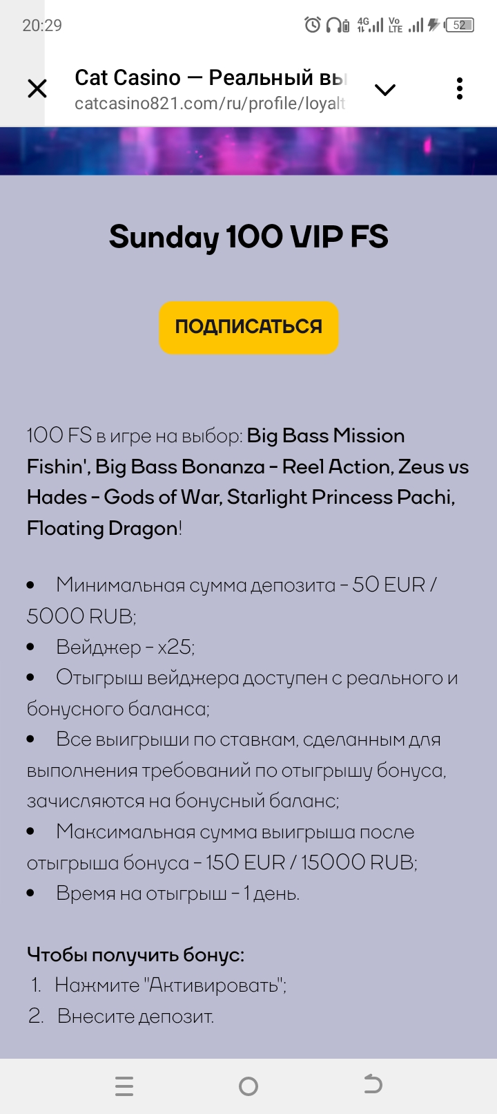 Повторил твой путь, к сожалению пшикДа сам окуел с форума хотел зайти активировать код сначало не прнял че за хрень потом смотрю 10к за деп 300р епать ))) ну я слил в ноль чет прям вообще не играло давай заноси и делись за наводку)