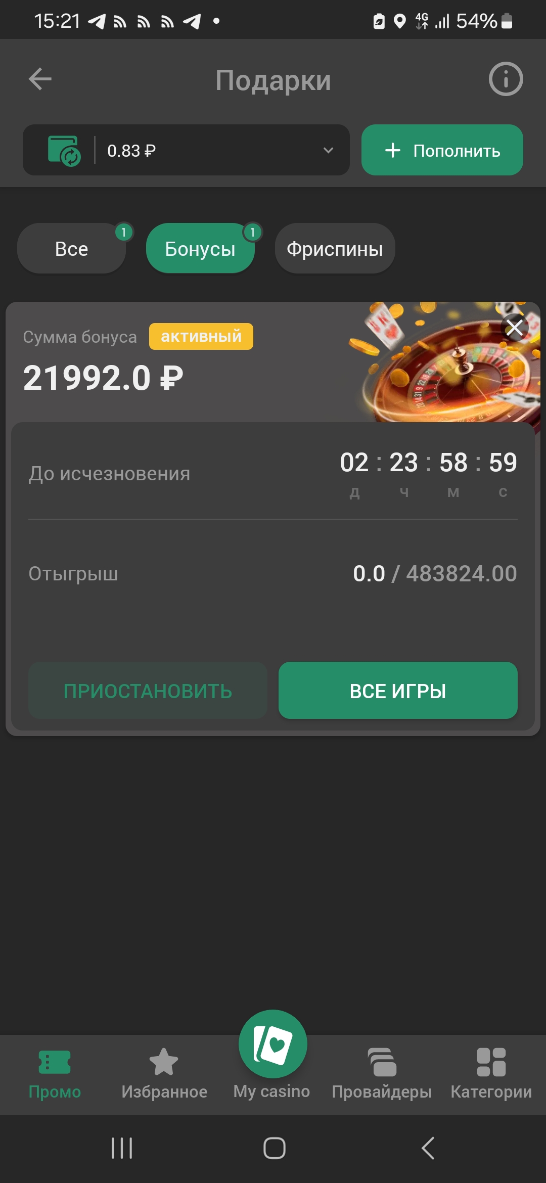 изначально был бонус после активации промокода 5000р-30 фс,сейчас поменяли после обращения в поддержкуНе гони откручиваб с бонусных