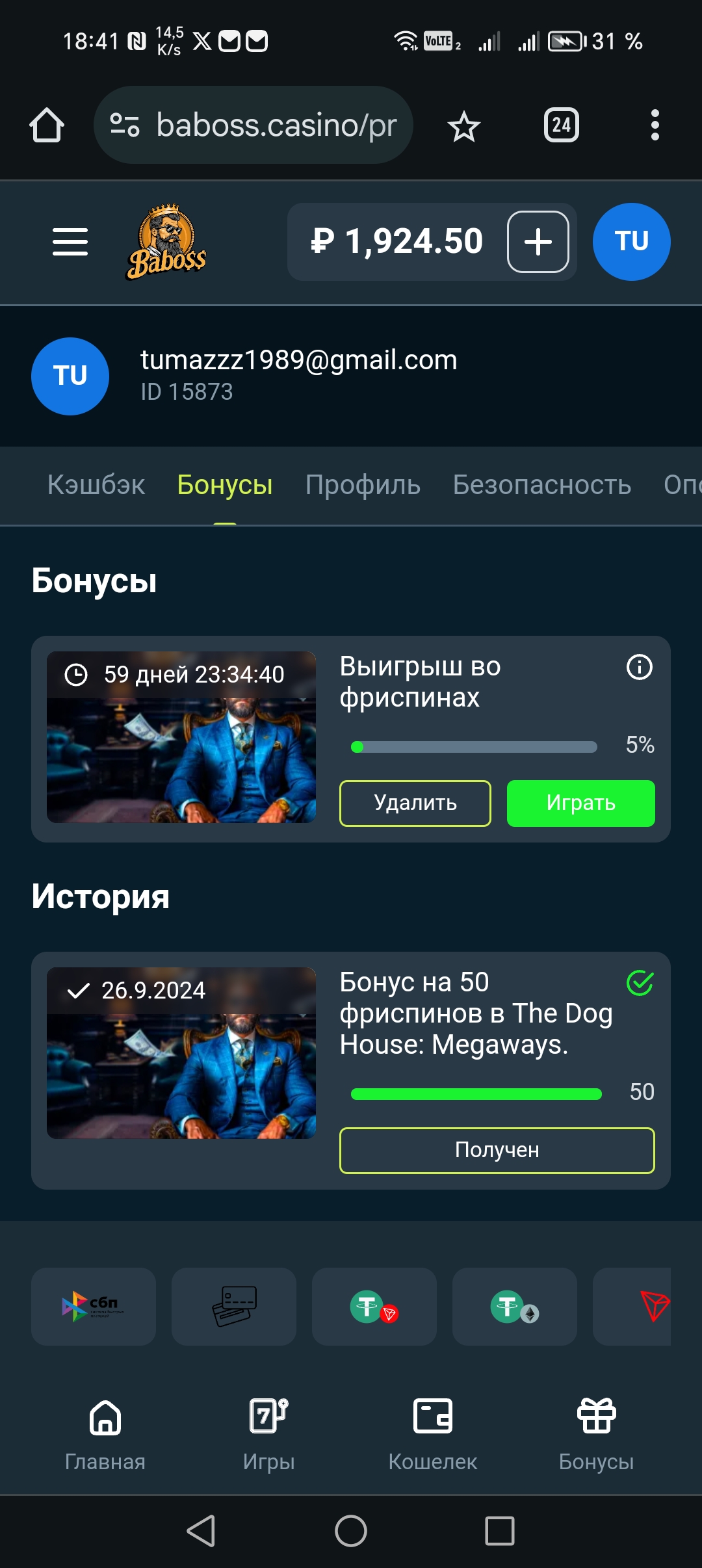 Получил. Отыгрывается бонусными.Посмотреть вложение 156963