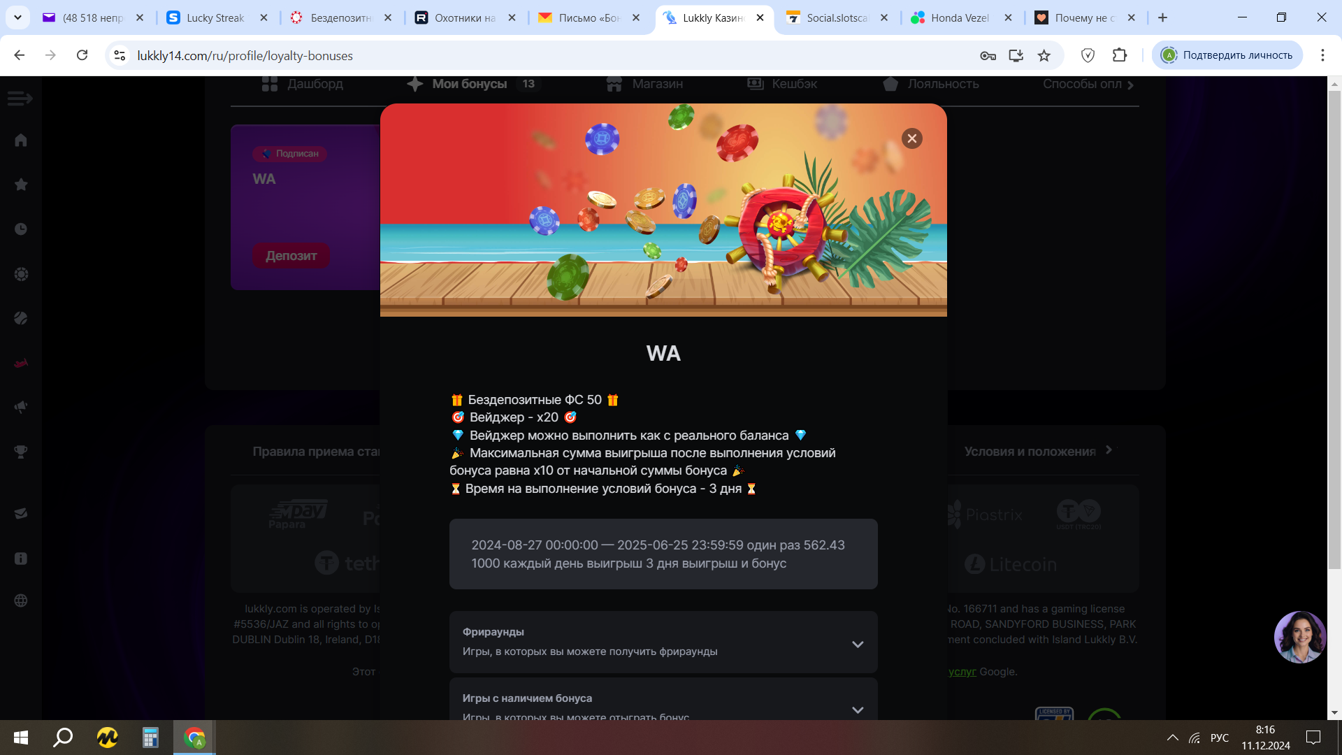 привет всем. казик LUKKLY рассылает "халяву" по промокоду PYRAMIDA активировав его видим вот это, но в игре фс нет. саппорт отвечает, мол внесите 1000р и получите фс. вот такая "халява".Посмотреть вложение 159626