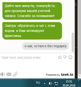 3. Указать в Лайв Чате Промокод: "Фриспины от Царицы"
